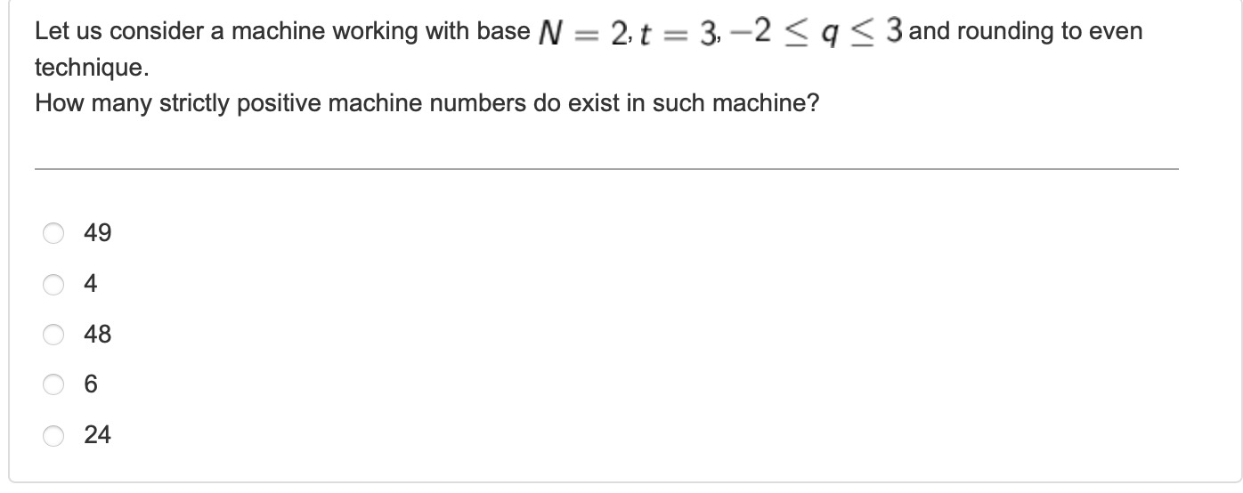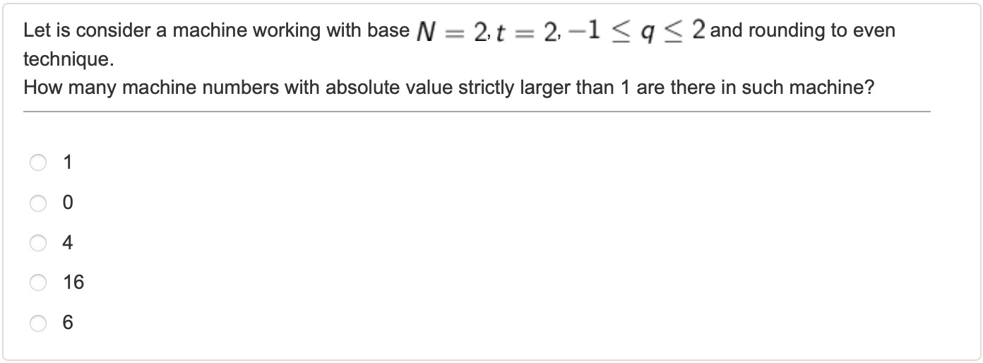 This question asks us to represent the number a with base N=10, t=8 digit after 0, and rounding even tecnique which means at the end we need to round the closest even number.