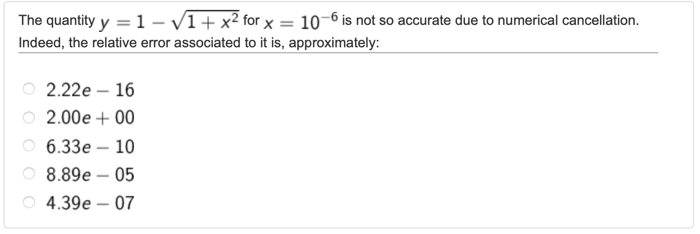 abs(y-y1)/abs(y1);Correct answer is 8.8901e-05, in this case, D.